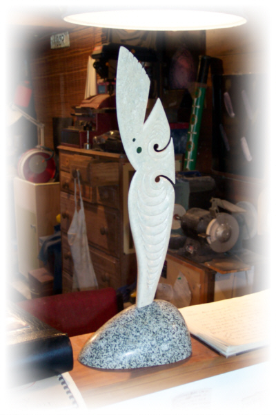 $1800 ![]() Raati Tohoora (Whale Harpoon) carved of Takaka Marble |